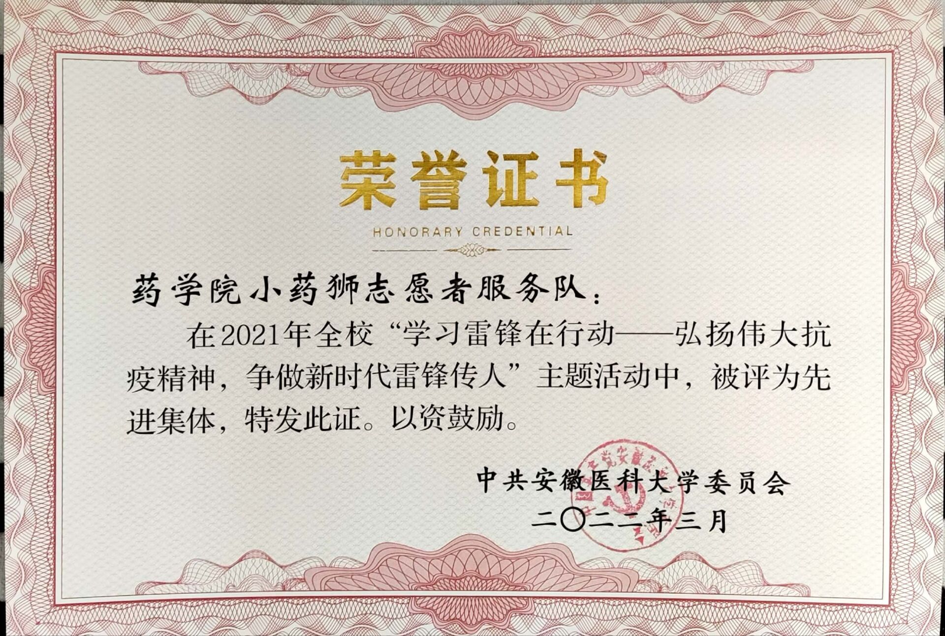 3月5日,7790cnm必发集团2021年度“学习雷锋在行动”主题活动先进集体、先进个人名单公布,公司小药狮志愿者服务队和2020级临床药学78班团支部获评“先进集体”,2018级药学专业本科生刘跃龙、2019级中药学专业本科生王艳军和2021级药学专业本科生张唯荣获“先进个人”。