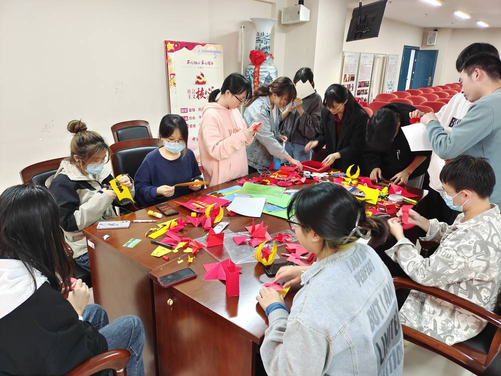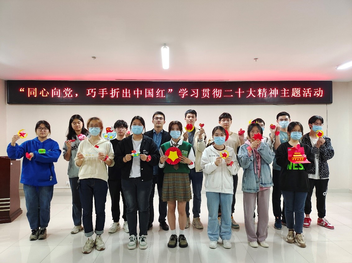 2022年10月16日党的二十大在北京胜利召开。为了深入学习宣传贯彻党的二十大精神,丰富公司学子在校期间文化生活,11月7日,公司2021级团总支在公司1604会议室举办“同心向党,巧手折出中国红”主题折纸活动。公司积极宣传,精心策划,同学们踊跃参加,表达了对党的崇敬与热爱。活动过程同学们观看制作视频,相互交流,充分发挥想象力和创造力,创作出了形式多样的手工作品。