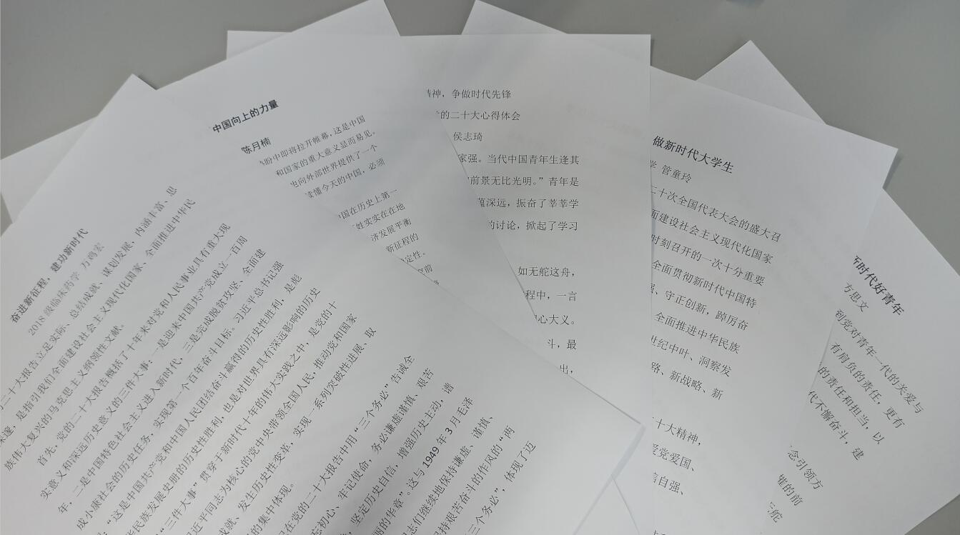 在2018级同学中开展《学习贯彻党的二十大精神——党员在行动》主题征文活动,旨在推动全体党员员工群众深入了解和掌握党的二十大精神。围绕过去五年工作和新时代十年的伟大变革,从自身亲历视角出发,以所见所闻、真情实感抒发对新时代十年经济发展、社会进步、生活幸福的真实感悟,以鲜活故事生动展现奋进新时代新征程的精神风貌,以理论视角交流研讨对党的二十大提出的重要思想、重要观点、重大论断、重大举措的认识理解,推动党的二十大精神入脑入心、落地生根。