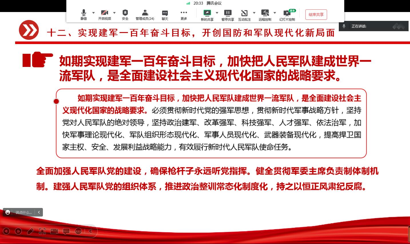 7790cnm必发集团2018级辅导员老师通过腾讯会议领学党的二十大报告,阐释习近平新时代中国特色社会主义思想的世界观方法论和新时代新征程党的使命任务,解读全面建设社会主义现代化国家的目标任务和以自我革命引领社会革命的重要要求,紧密结合新时代的伟大变革,深刻领悟“两个确立”的决定性意义,增强“四个意识”、坚定“四个自信”、做到“两个维护”,以团结奋进的精神状态投身全面建设社会主义现代化国家、全面推进中华民族伟大复兴的历史进程。