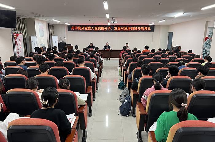 汪江平宣读关于举办公司分党校第十七期入党积极分子以及第七期发展对象培训班的通知。2021级中药学专业王希瑞同学作为学员代表发言。