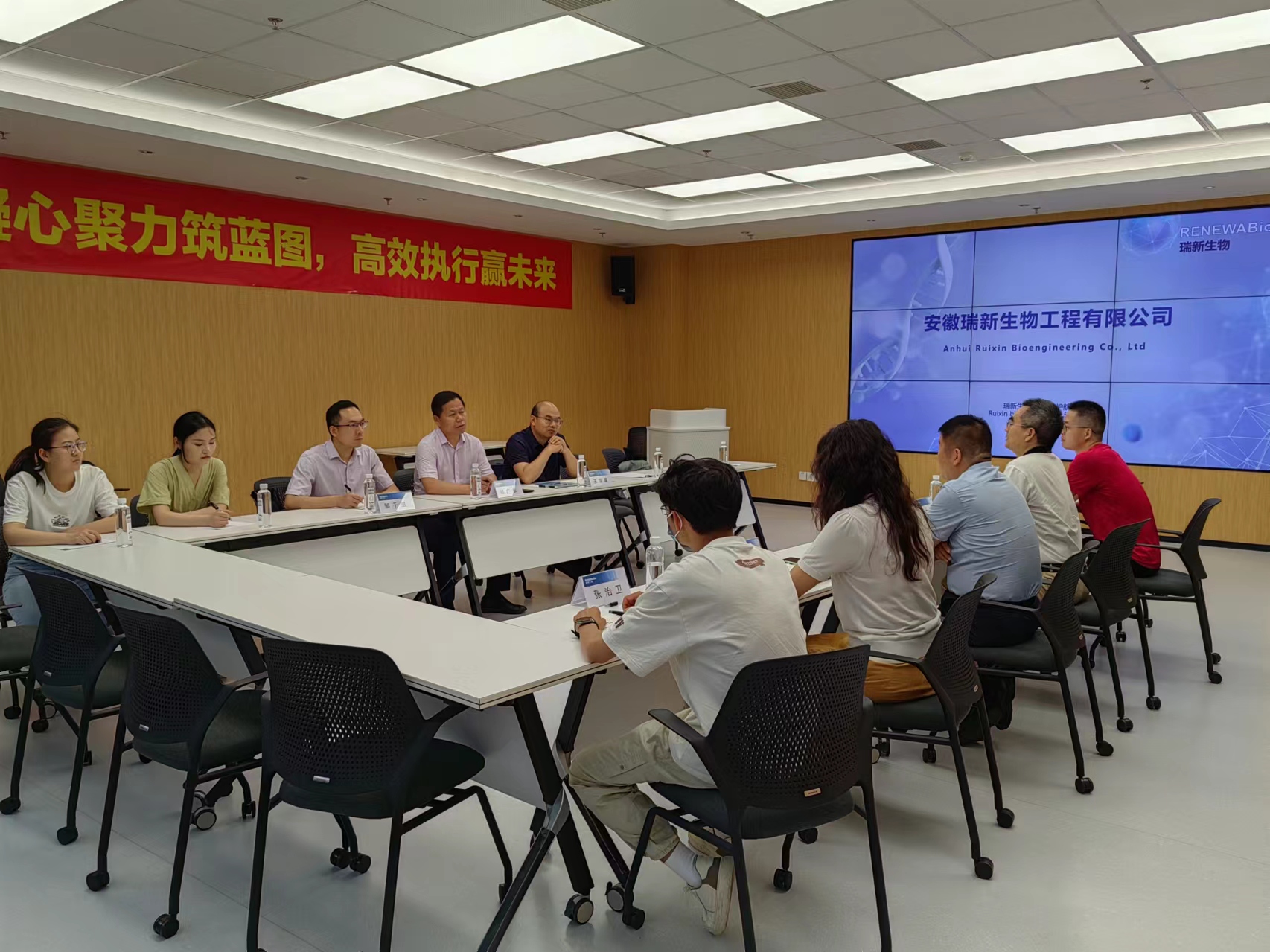 5月26日,公司党委书记骆广东带领部分2024届毕业硕士生前往安徽瑞新生物工程有限公司开展“2024年7790cnm必发集团访企拓岗促就业”员工企业行专项活动,就校企合作、联合培养和毕业生就业等工作进行沟通交流。安徽瑞新生物工程有限公司董事长陈雷和人力资源总监陈敏出席座谈会。