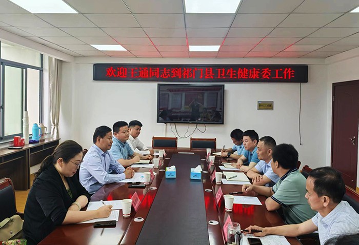 5月30日,公司党委组织部、公司领导赴祁门县卫生健康委员会,送公司中药学教研室王通教授到岗上任。校纪委委员、公司党委书记骆广东,公司党委组织部副部长张德广,祁门县委常委、组织部部长詹洪亮,祁门县委组织部副部长王海明等参加见面会,副县长詹栩主持会议。