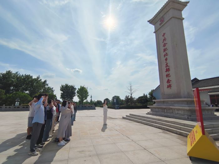 中共合肥北乡支部纪念馆是为纪念合肥地区第一个中国共产党组织(中共合肥北乡支部)而建,现为合肥市爱国主义教育基地、合肥市廉政教育基地。纪念馆内,支部党员跟随讲解员回顾了中共合肥北乡支部的创建历史背景与开展革命光辉历程,了解了合肥党史和革命抗战史,一幅幅照片、一件件旧物让支部党员深刻感受到革命先烈们的无私奉献精神。纪念碑前,支部党员们在支部书记的带领下重温入党誓词,更加坚定了作为一名党员的理想信念。