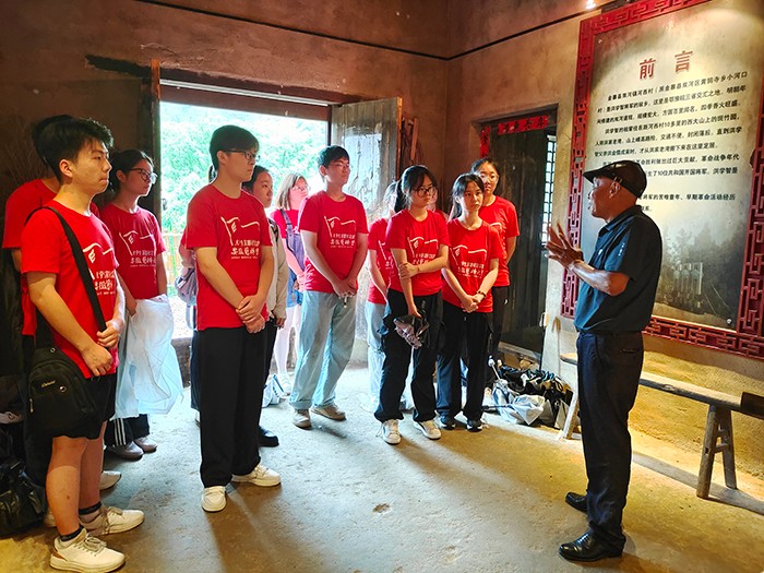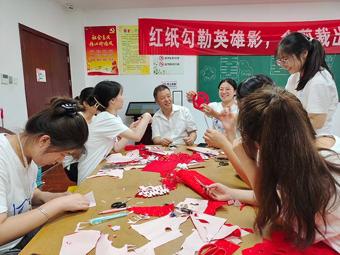 感受文化魅力,坚定文化自信。实践团前往安徽农耕民俗文化展览馆、叶春善故居——京剧宗师堂,深入了解大别山地区民俗文化和京剧的历史文化渊源,从中华优秀传统文化中汲取精神养分。在金寨县文化馆,同学们一边体验学习非遗剪纸技术,一边学唱大别山民歌与传统戏曲,感受中华优秀传统文化的独特魅力。“以潜移默化的方式将中华优秀传统文化融入社会实践‘大思政’课堂,让青年学子扎实、扎深中华优秀传统文化的‘根’,坚定文化自信。”实践团指导老师说道。