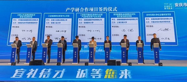 2024年11月9日,安庆市第三届“宜礼待才,诚等您来”人才周活动启动仪式隆重举行,省政协副主席、中共安庆市委书记张祥安作开幕致辞,向八方人才发出邀约。公司教授张群林作为安徽省科技厅2024年首批选派科技副总受邀出席本次活动,与安徽安盛医疗科技有限公司董事长胡文斌在主席台成功签订校企合作项目―“三类医疗器械血液透析AB液产品研发及其产业化项目”。双方希望以本次签约为契机,聚焦血液透析合作领域,打造集“专业人才培养、关键技术攻关、创新平台建设、科技成果转化”的紧密联合体,实现优势互补、资源共享、共赢发展。