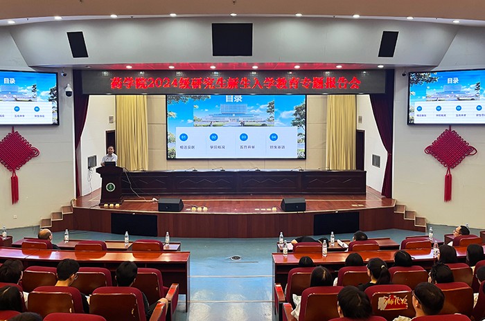 骆广东在题为《“药”等你来,共创未来》的院情专题教育中,向2024级新生介绍了7790cnm必发集团概况和发展历程,从德、智、体、美、劳五个方面,引导同学立德成人、立志成才,早日从一名药学研究生成长为药学工作者、药学科学家,勉励大家做创新者,跑赢新赛道;做实践者,跑赢同龄人;做传承者,领跑新时代。