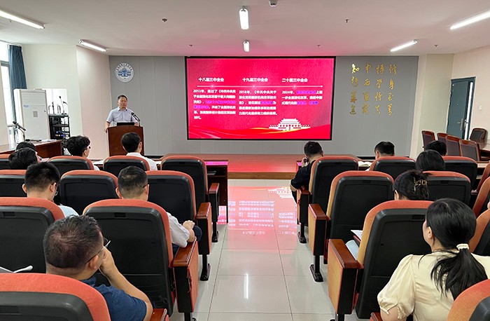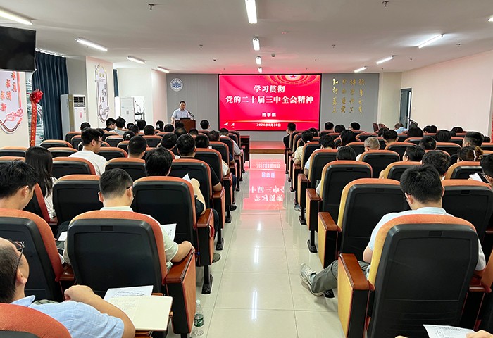 8月30日上午,公司组织全体教职工学习党的二十届三中全会精神。本公司党委书记骆广东以“学习贯彻党的二十届三中全会精神”为主题,为全院教职工讲授专题辅导报告。执行经理孟晓明主持报告会,院领导班子全体成员出席会议。